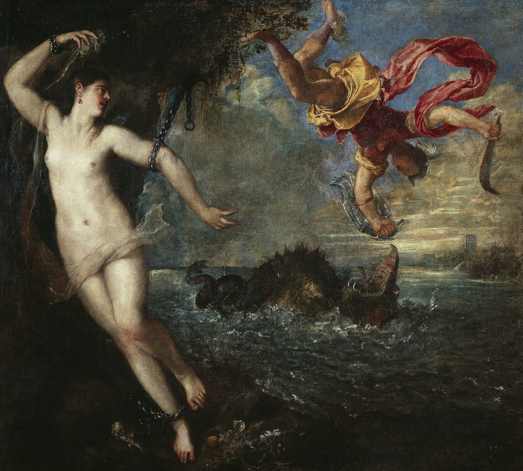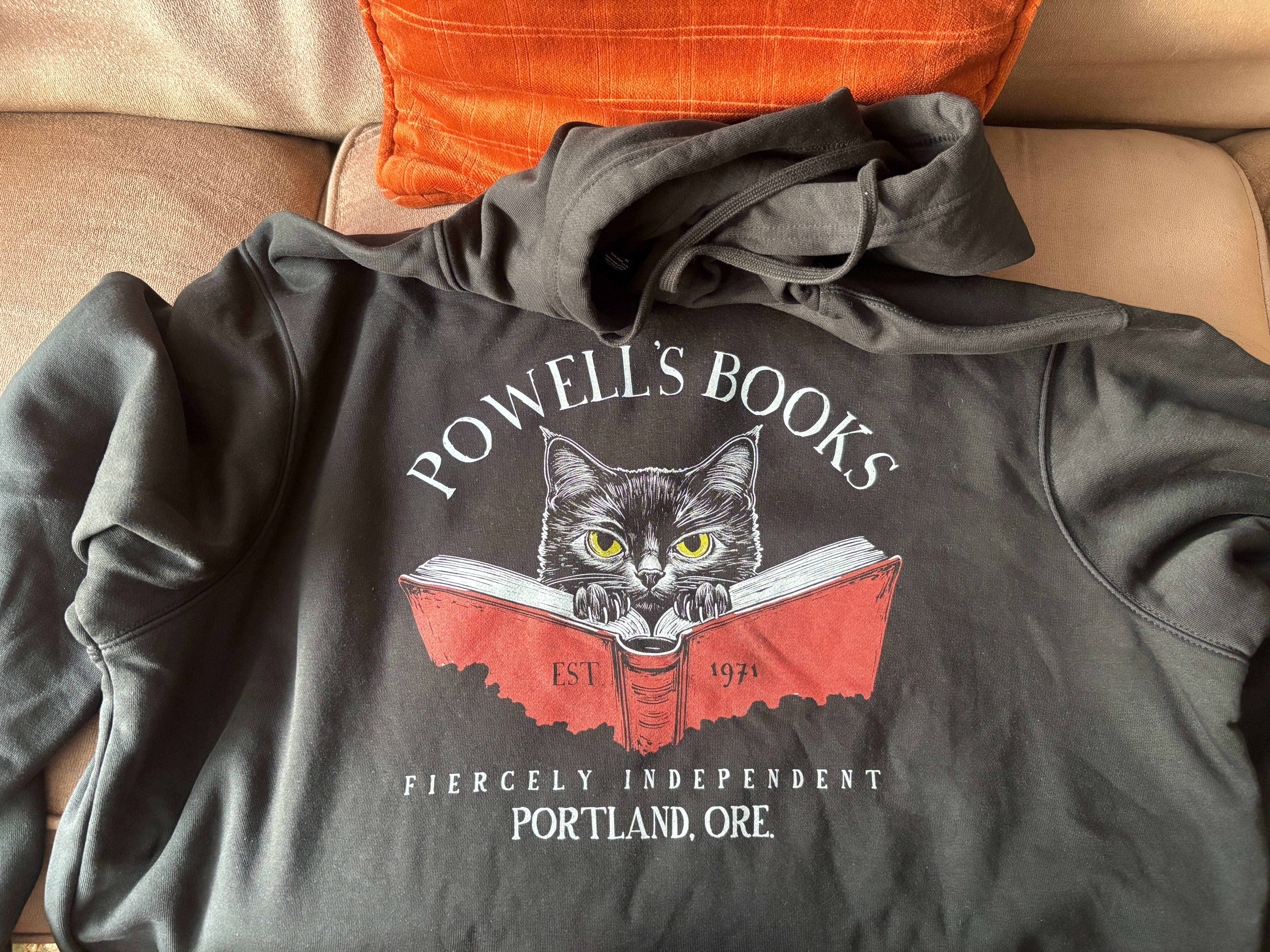 The sea monster in the Titian painting that comes up again and again in Iris Murdoch’s novel The Sea, The Sea. Here’s the sweatshirt Chris bought at Powell’s — without realizing it was AI generated. Oops.